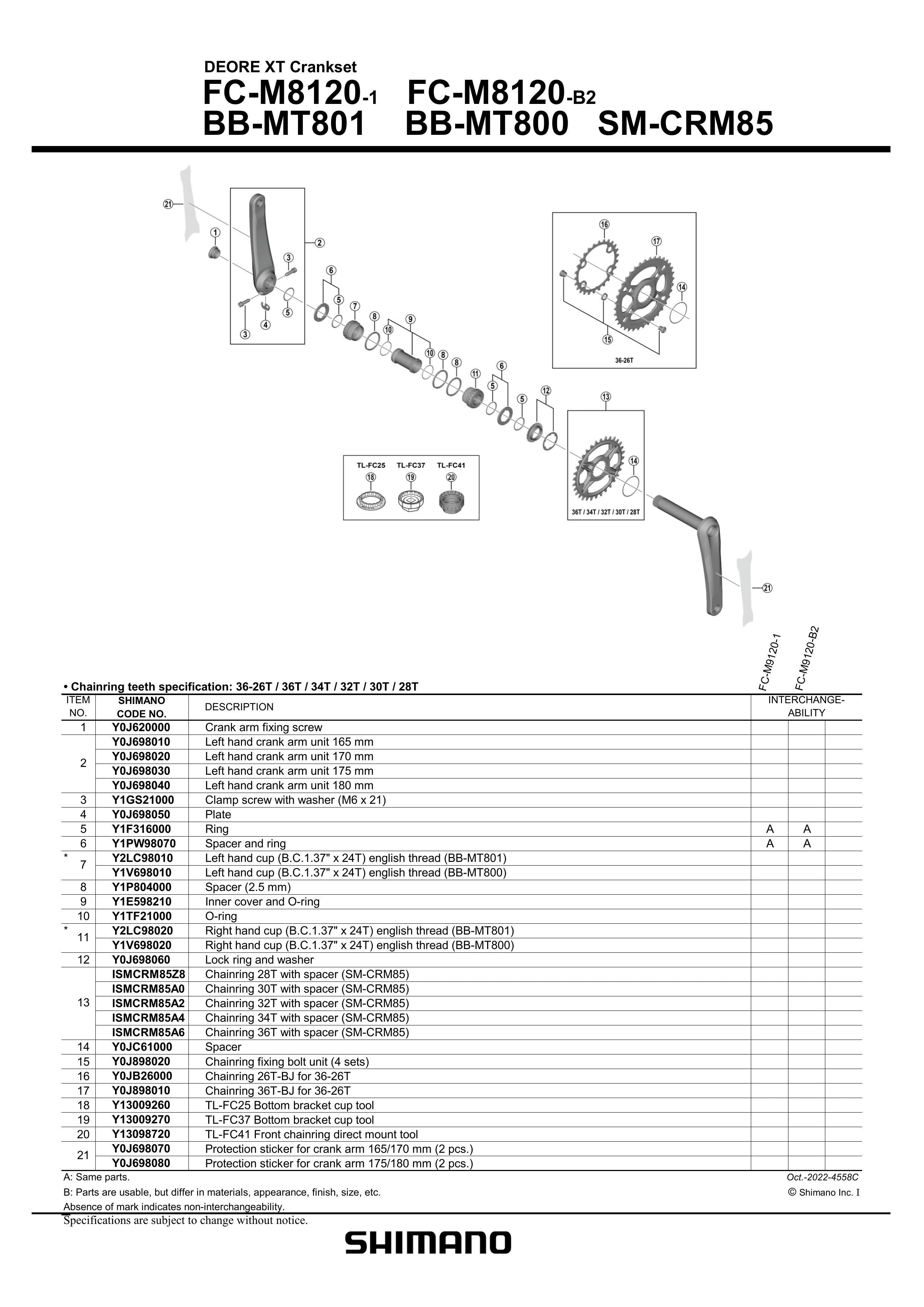 SHIMANO FAHRRADKURBELGARNITUR DEORE XT FC-M8120-1 165 mm