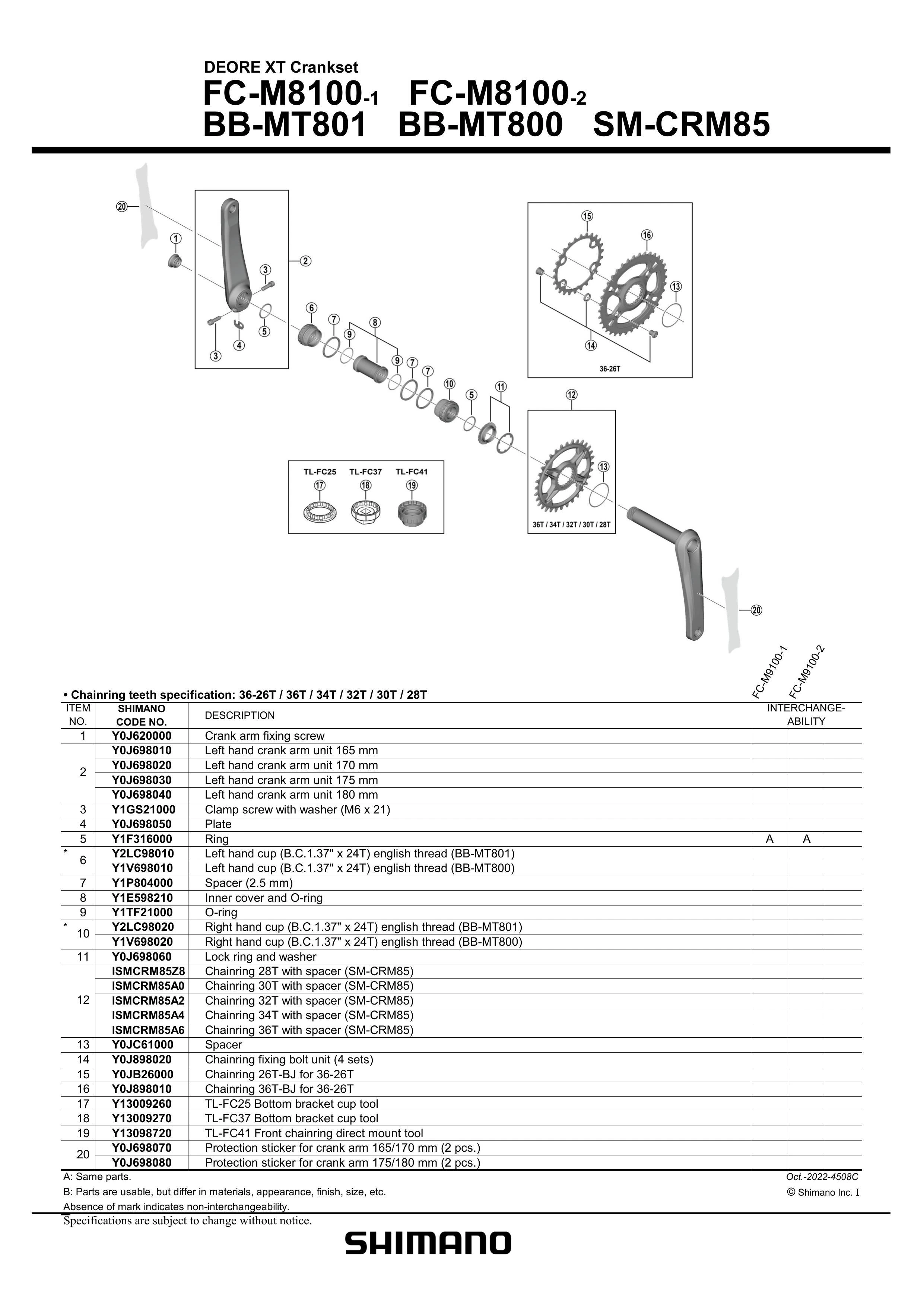 SHIMANO FAHRRADKURBELGARNITUR DEORE XT FC-M8100-1 170 mm