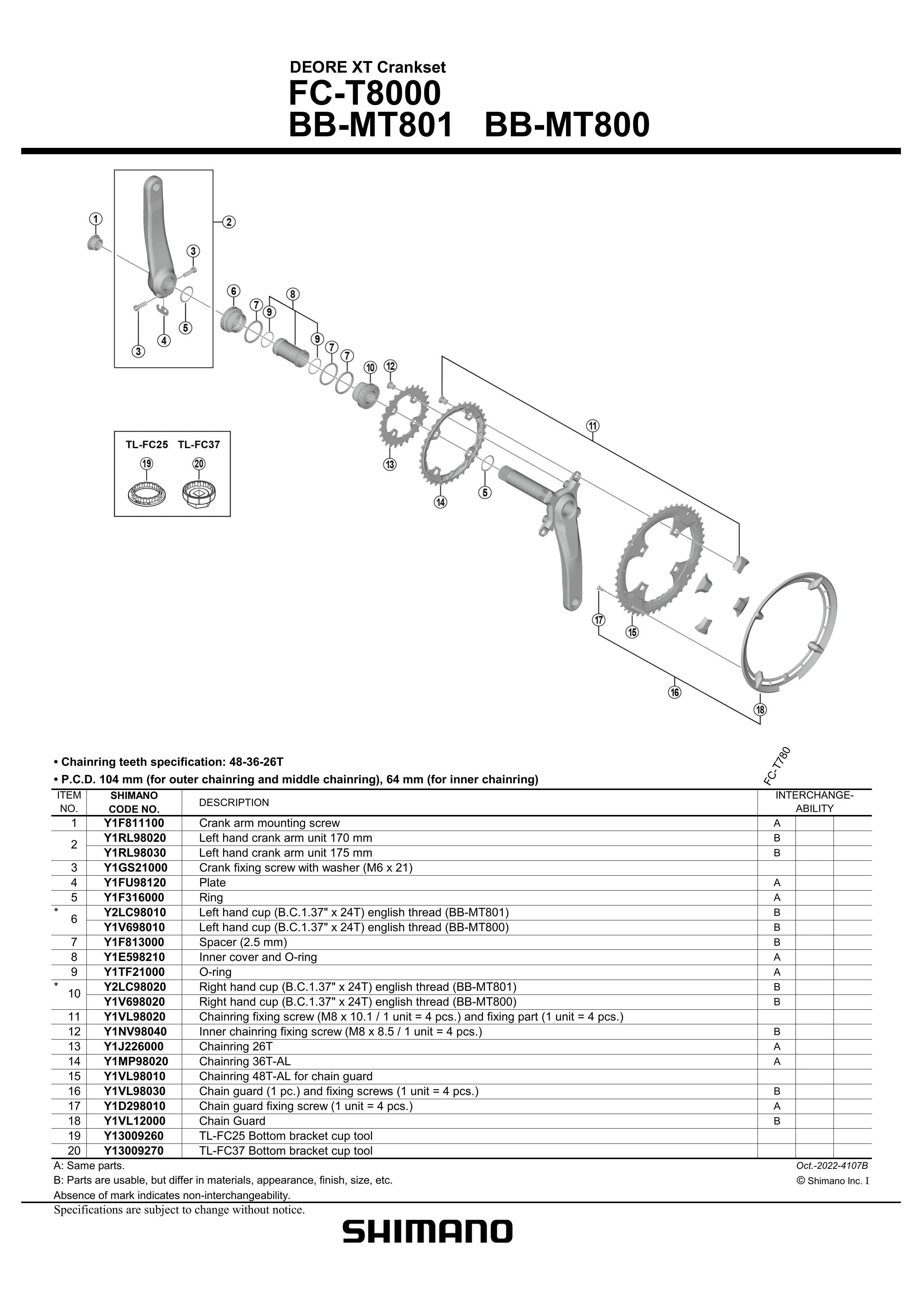 SHIMANO FAHRRADKURBELGARNITUR DEORE XT FC-T8000
