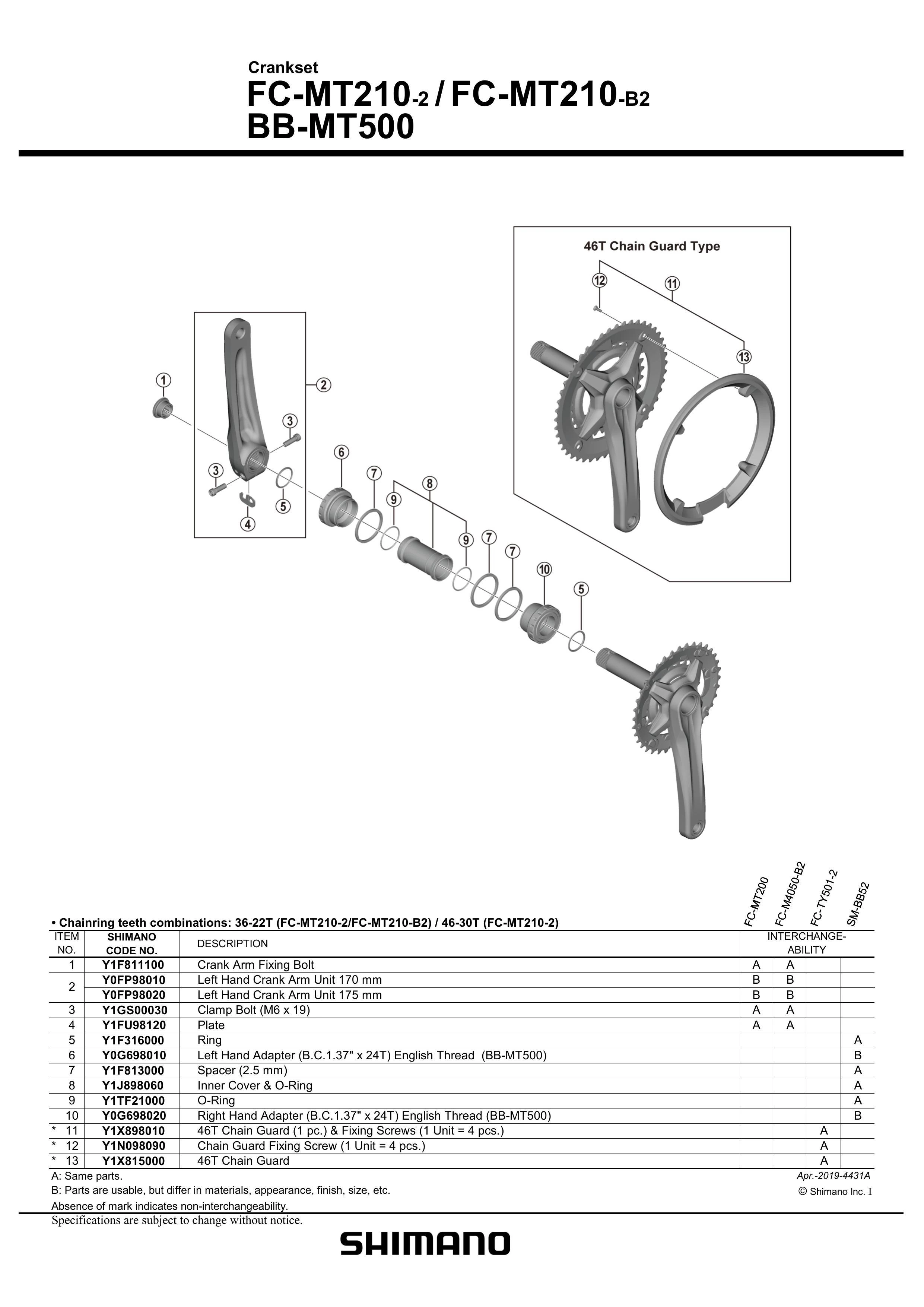 SHIMANO FAHRRADKURBELGARNITUR FC-MT210