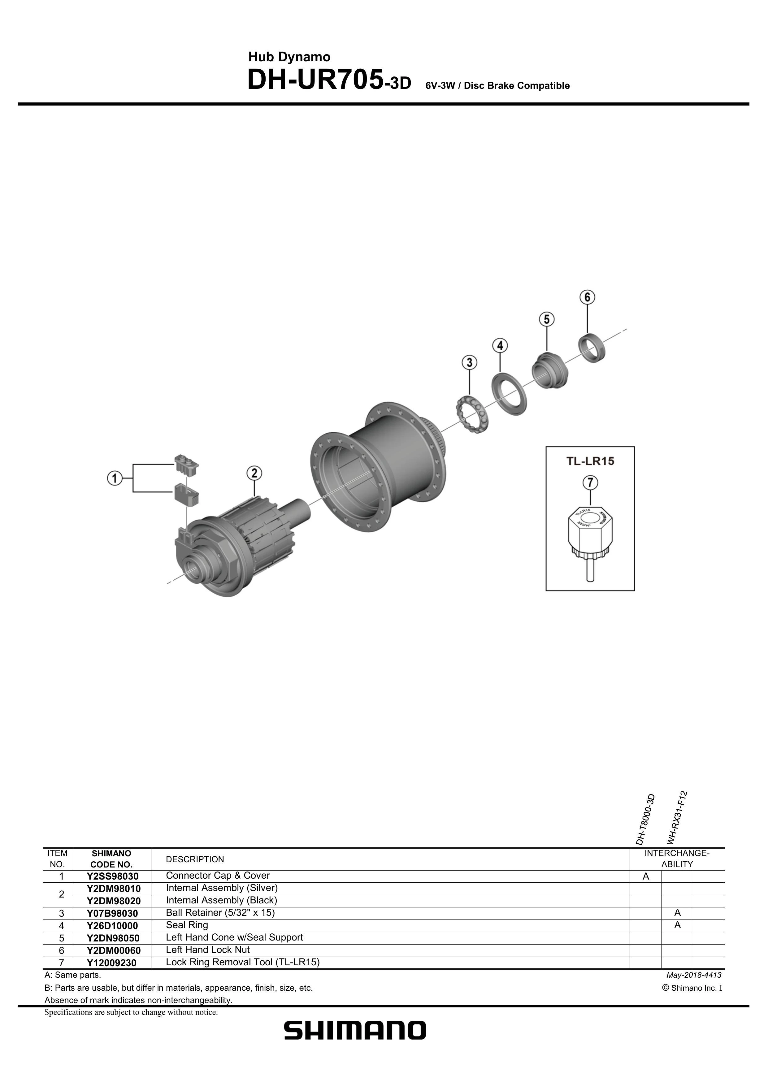 SHIMANO FAHRRAD NABENDYNAMO NEXUS DH-UR7005-3 32L